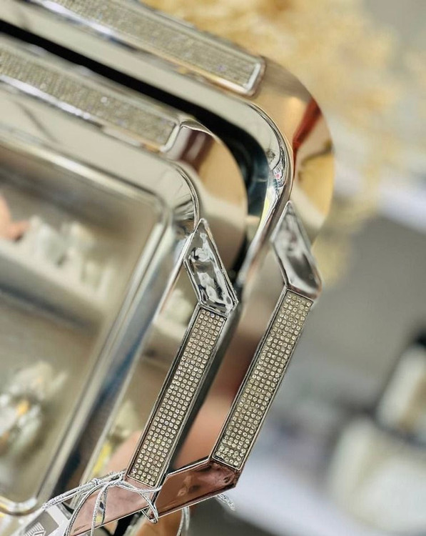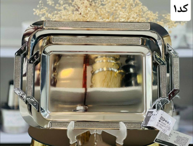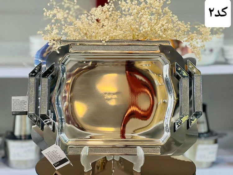 سینی استیل جفتی نگین دار آیینه ای