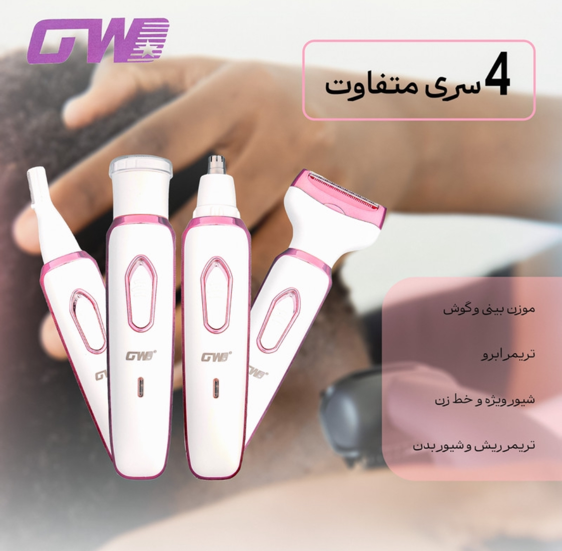 شیور ۴کاره برند GW جی دبلیو اورجینال وارداتی مدل GW-223 دارای ۴ سری مختلف👇 🔺سری موزن ابرو و حجم زن ابرو 🔺سری شیور صورت 🔺سری شیور تمام بدن 🔺سری موزن دماغ و گوش دارای تاییدیه CEاروپا
