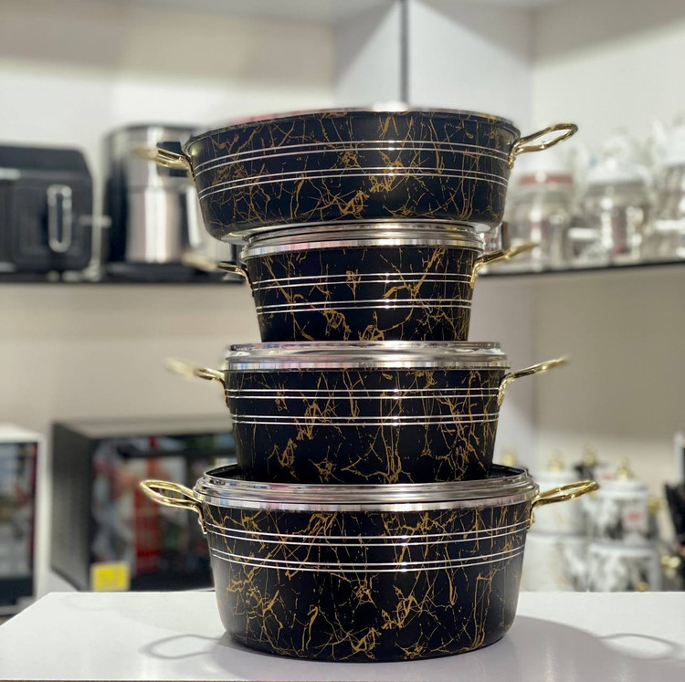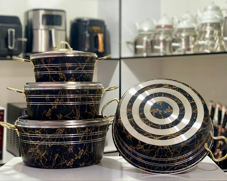 ⭕️سرویس قابلمه ۷پارچه فورج طرح سنگی دسته طلایی رسید